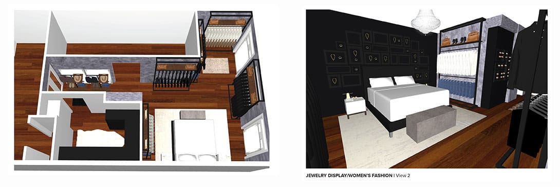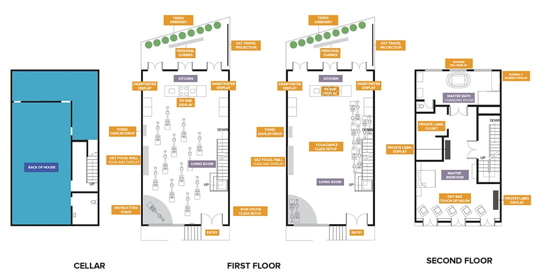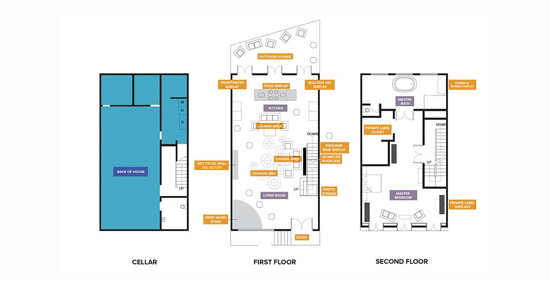 blueprints and renderings prepared by our partner agency LeadDog; different configurations of the house for different event days